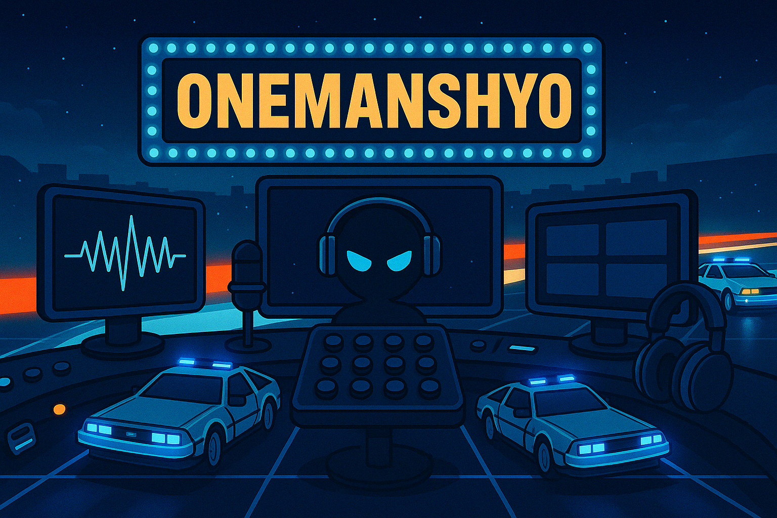 ONEMANSHYO is an electronic music performance combining DJ mixing and live reactive visual mixing.